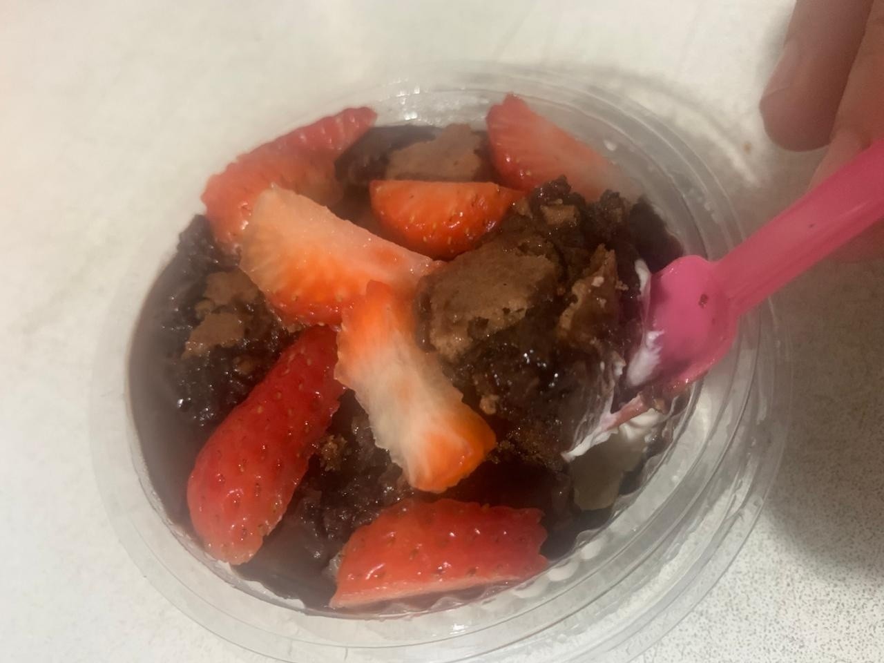 brownie, Morango Fatiado, creme de ninho, Brigadeiro 50%cacau