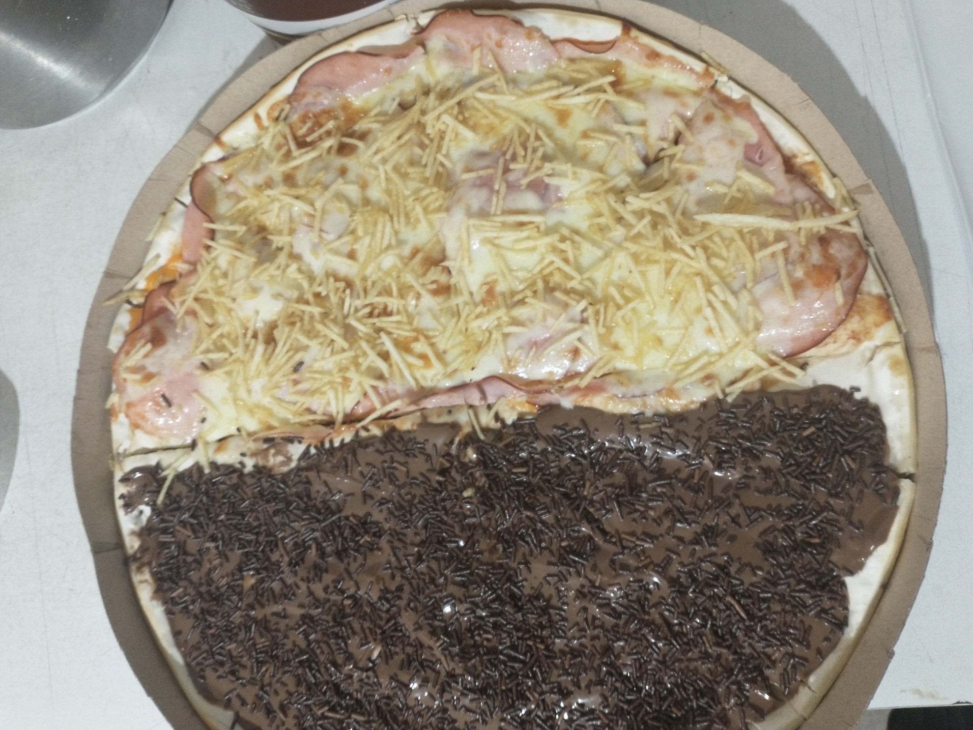 tipo cheddar, mussarela, Batata Palha, PIZZA NÃO PODE SOFRER ALTERAÇOÊS NOS INGREDIENTES, Peito De Peru, ing chocolate ao leite e granulado